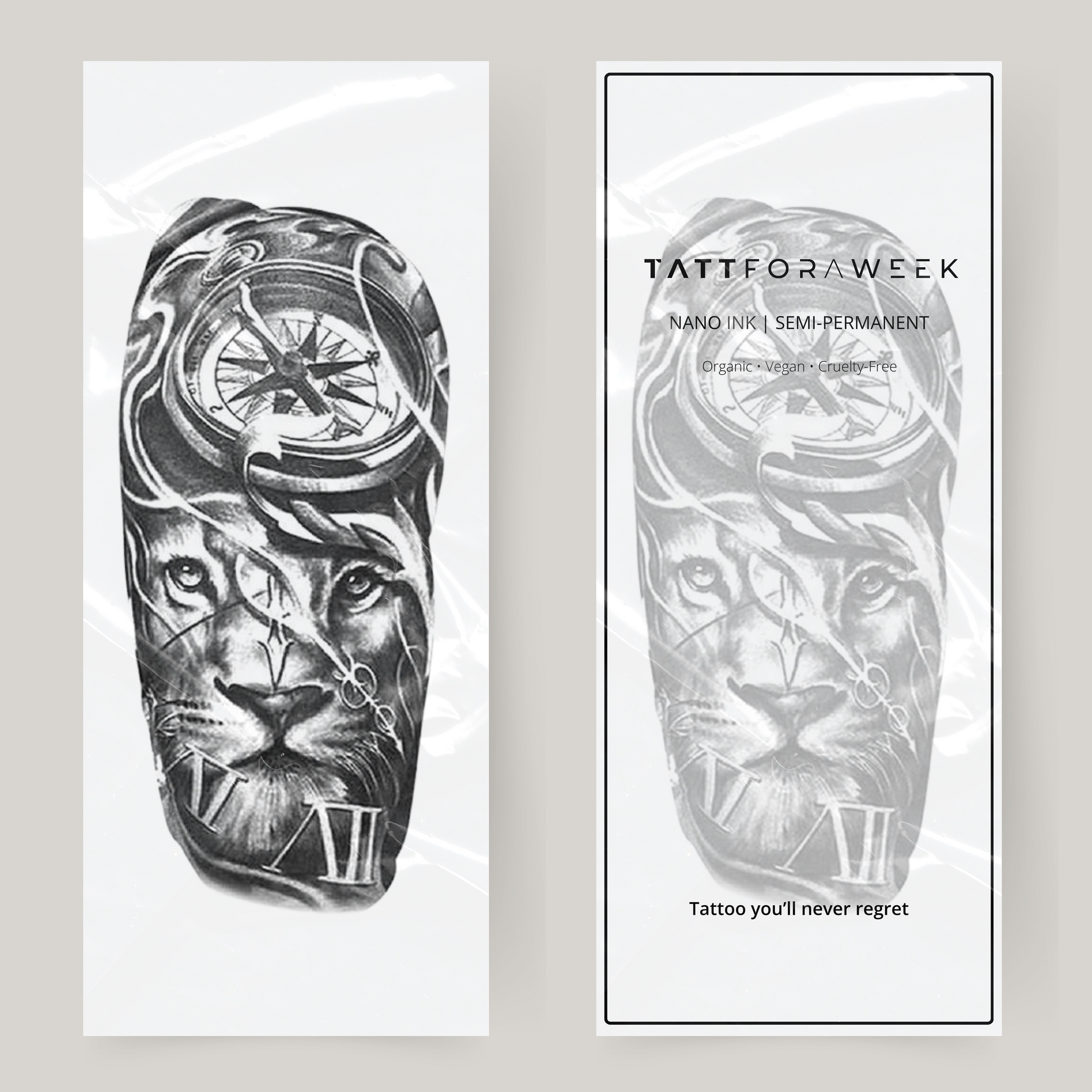 Fałszywy tatuaż na rękawie z lwem i zegarem