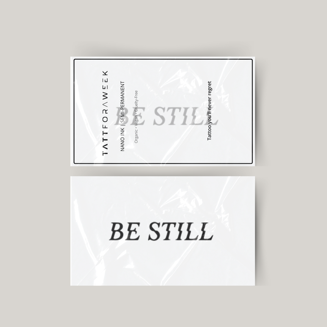 tymczasowy tatuaż bądź spokojny może pozostać na miejscu nawet do 2 tygodni.